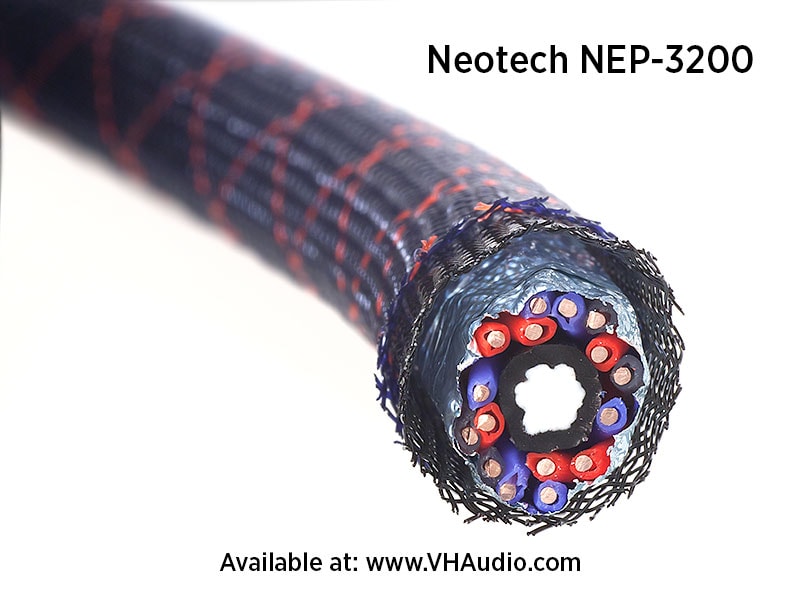 The Neotech NEP-3200 is a 9AWG UP-OCC (ohno continuous cast) Copper AC power cable, that uses 16 solid copper wires that are each 17 AWG. Each of these solid core wires is individually insulated with FEP (fluoropolymer) insulation. Each wire is woven around a fiber-filled PVC core to maintain structural integrity, and minimize conductor movement. The Neotech NEP-3200 is among the best bulk cables on the market, and is especially ideal for high current amplifiers, as well as feeding power strips or line conditioners. Use the 6 red color-coded conductors for 'hot', 6 blue conductors for 'neutral', and 4 black conductors for the 'safety ground'. Total O.D. is .614" (15.6mm).