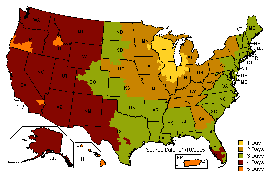 CLICK HERE for UPS "Ground" transit time map. "Time in transit" is BUSINESS days.